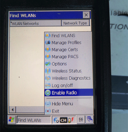 用戶跟著指引操作,點(diǎn)擊網(wǎng)絡(luò)菜單,選擇Enable Radio開(kāi)啟,如果是Disable Radio網(wǎng)卡就是屬于關(guān)閉狀態(tài)。完成操作后采集器屏幕的網(wǎng)絡(luò)列表上,出現(xiàn)了一個(gè)個(gè)SSID,鏈接后信號(hào)和網(wǎng)速都很穩(wěn)定,PING網(wǎng)關(guān)也沒(méi)丟包。